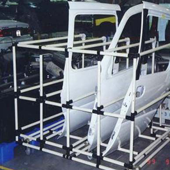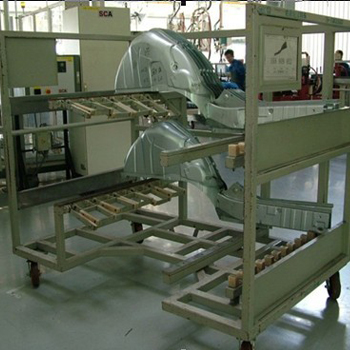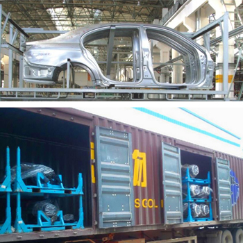 滿足汽車生産企業如發動機、車門框架等不規則形狀産品複雜定位要求,同時滿足如汽車内飾、玻璃等表面防護要求;功能件模塊化設計,專用模具制作,操作方便,确保裝載産品安全無損傷。。